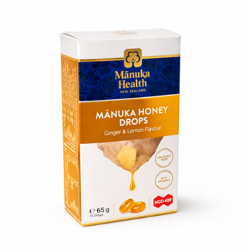 Cukierki z Miodem Manuka MGO™ 400 i witaminą C o smaku imbirowo-cytrynowym Manuka Health